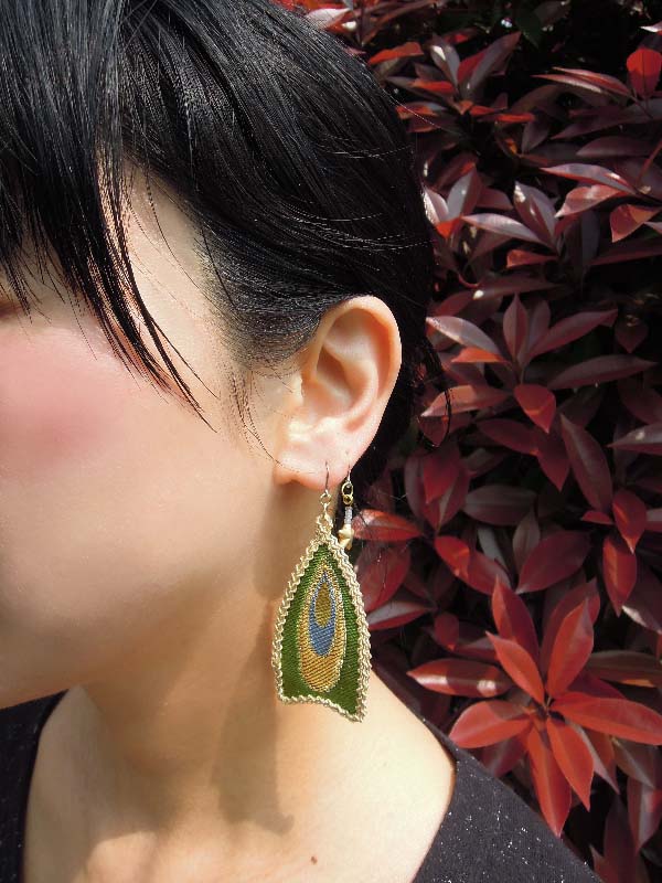 先日金襴織物を使った可愛い耳飾り~羽のピアス~西陣金襴羽重ね紋様使用 というブログを書かせていただきました。