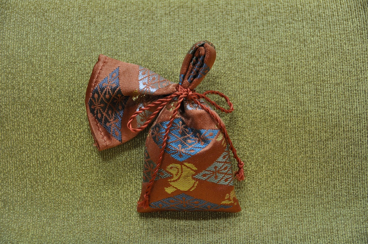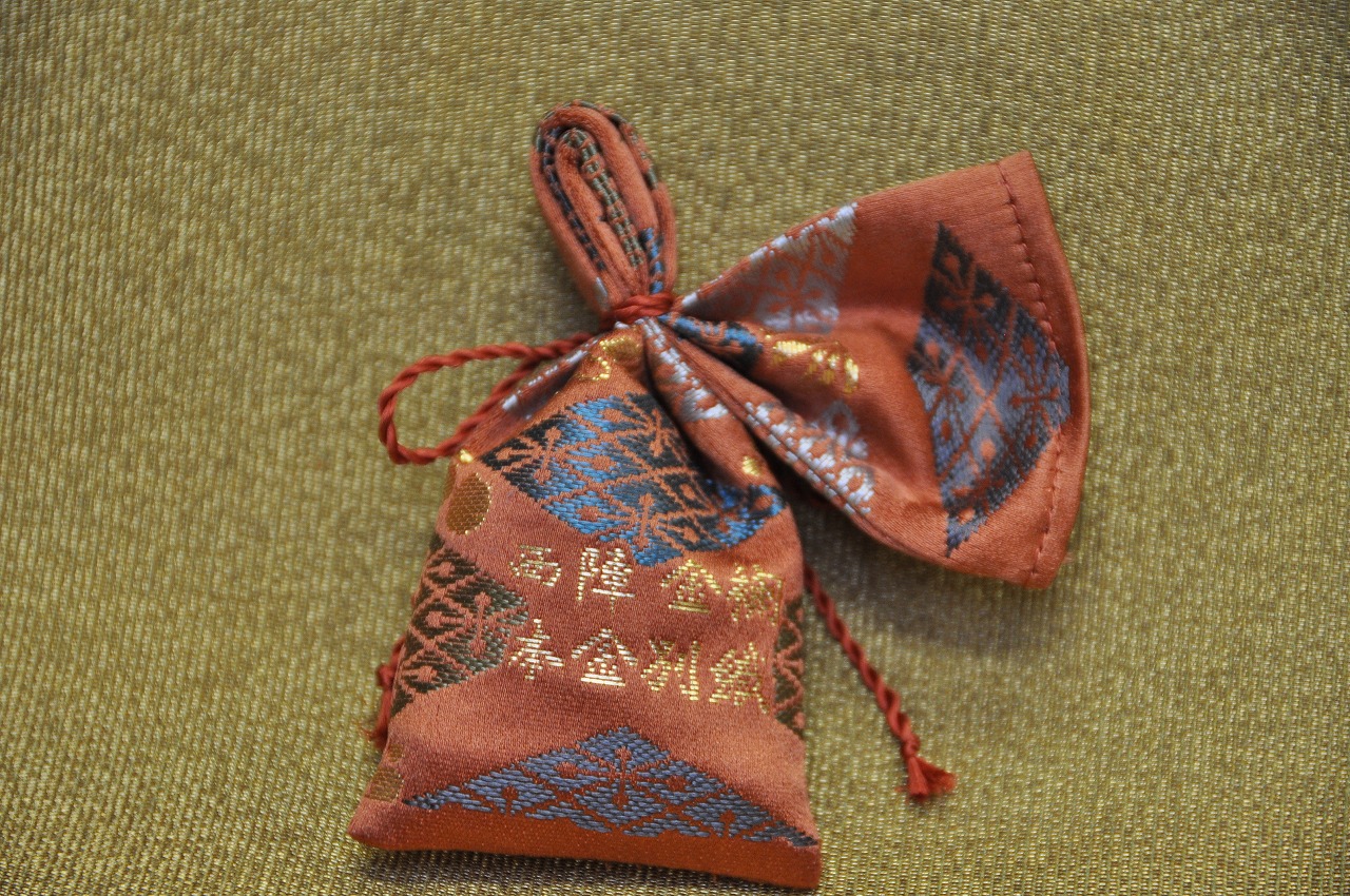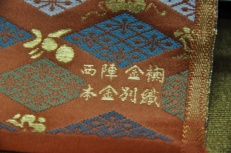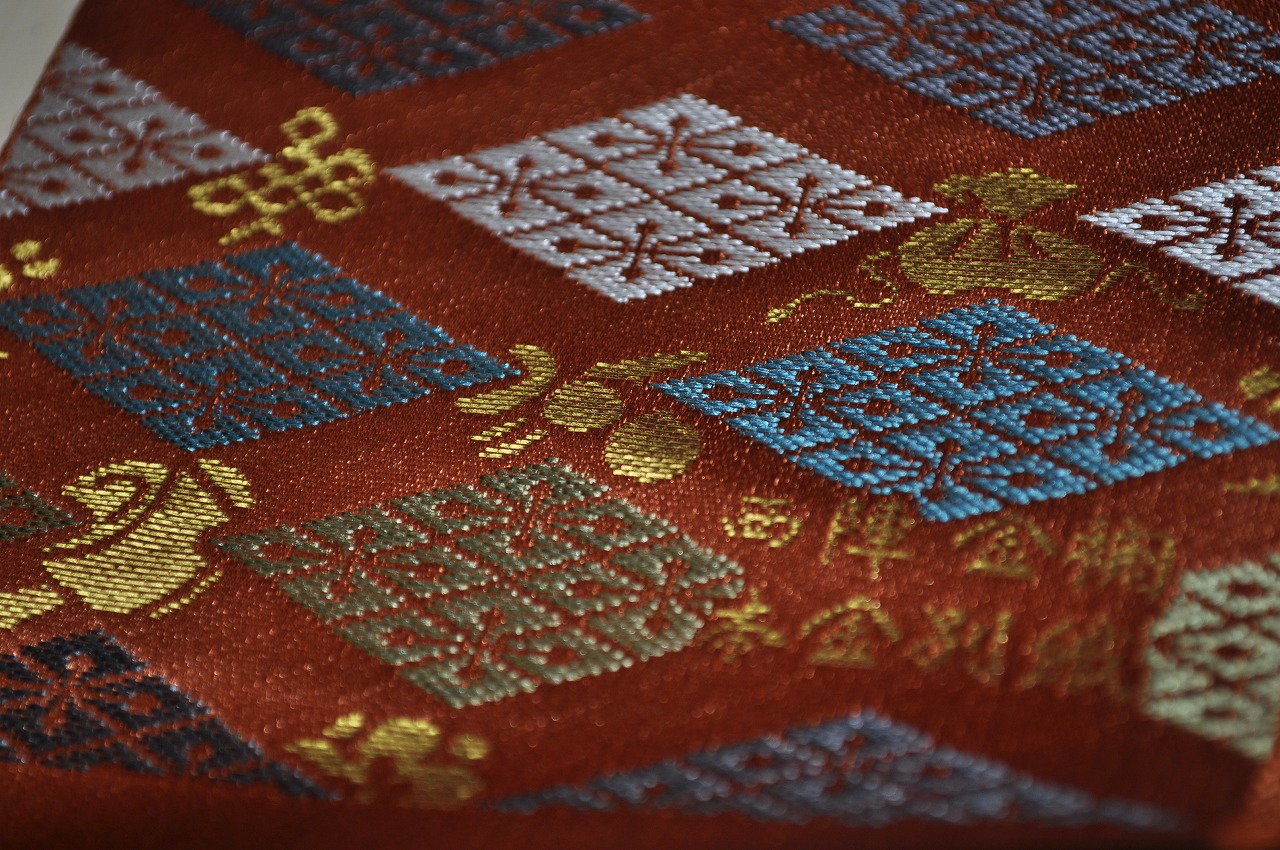 全ての製品, 金襴小物 西陣織 正絹 金襴 匂い袋~サビ朱地 武田菱宝尽し紋様 2014.01.08 こんにちは。 我が社では仕事始めから3日目です。皆様お健やかにお過ごしでしょうか。 さて、今日は岡本織物の新製品のご紹介です。昨日も新製品でしたが今日は紋様が違います。 全正絹 金沢産本金箔糸引箔 金襴地の匂い袋 サビ朱地 武田菱宝尽し紋様です。どうぞ御覧下さい。 武田一族が使用していた定紋「武田菱」の力強さに、可愛らしい宝物を散りばめた「宝尽し」です。 正絹本金 匂い袋~サビ朱地 武田菱宝尽し紋様 正絹本金 匂い袋~サビ朱地 武田菱宝尽し紋様 金の色が褪せないようにと「本金引箔」で織らせていただきました。我が社の「本金箔」は「金沢産の金箔」&漆&和紙を使用しています。こちらの武田菱紋様では宝部分に金が出てきています。↓鈍く光っている所が本金箔です。こちらは「武田」というイメージでキラキラの箔ではなくて鈍く光る「さび箔」を使いました。 正絹本金 匂い袋~サビ朱地 武田菱宝尽し紋様 この匂い袋をの桐箱に入れてお届けいたします。西陣織工業組合の「本金証書」を入れて、 匂い袋用 桐箱 説明書きも入れまして、 匂い袋用 桐箱 匂い袋用 桐箱 中身を入れて蓋をして出来上がり。 正絹本金 匂い袋~サビ朱地 武田菱宝尽し紋様 裏側には本金の証が織り込まれています。色は↑の色が一番近いです。 正絹本金 匂い袋~サビ朱地 武田菱宝尽し紋様 このようにしてお届けいたします。口をまとめている「正絹紐」の色はご指定できません。もし、熱いご要望があったらお伝えください。 ちょっとした「お礼」やお届け物にぴったりの可愛い匂い袋だと思います。どうぞ、お使いください。 手に持った感じは・・・ 正絹本金 匂い袋~サビ朱地 羽重ね紋様 こちらは「正絹本金 匂い袋~サビ朱地 羽重ね紋様」ですが・・・。 どうぞお気軽にお問い合わせ下さい。 お問い合わせ こちらは全正絹 西陣織 金襴 武田菱宝尽し文様としてお分けすることも可能です。 武田菱宝尽くし Post Share LINE Pin it note 記事のタイトルとURLをコピーする 金沢産本金箔糸引箔 西陣織 正絹 金襴 の匂い袋~ 滴紋様 金沢産本金箔糸引箔 西陣織 正絹 金襴 の匂い袋~青地 流水千鳥紋様
