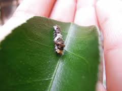 卵から孵って、最初は黒にちょっと白い模様の「鳥の糞擬態」の芋虫です。
