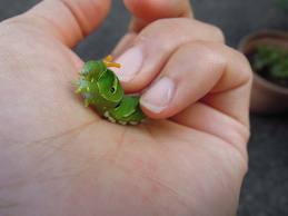 次は黒いお目目に擬態した緑色の青虫に変身です。