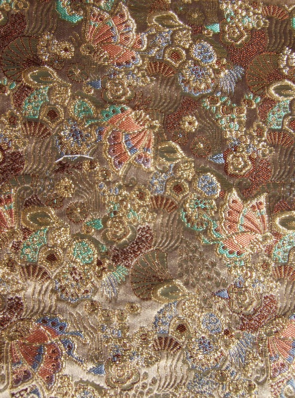 蝶と夏の必需品、扇子を蝶をちりばめた「西陣織 正絹 金襴 蝶扇花」を織りました。