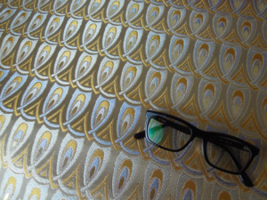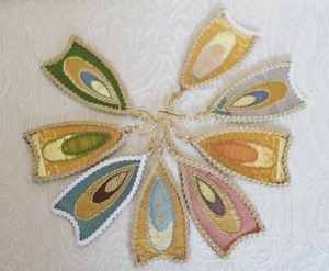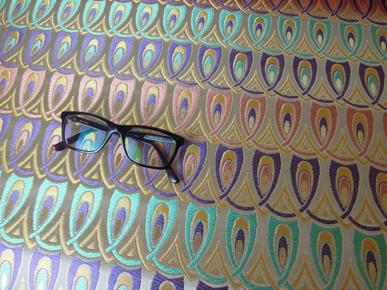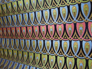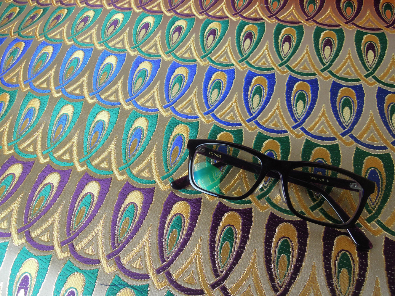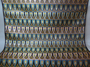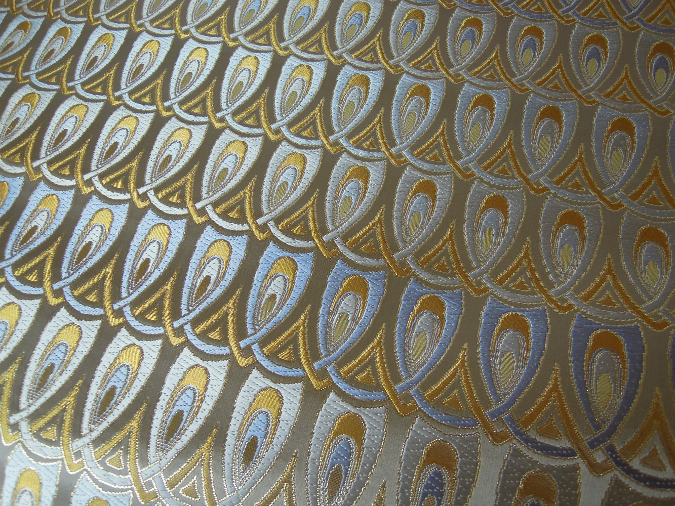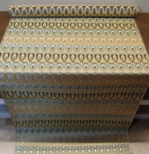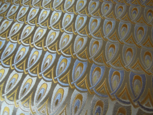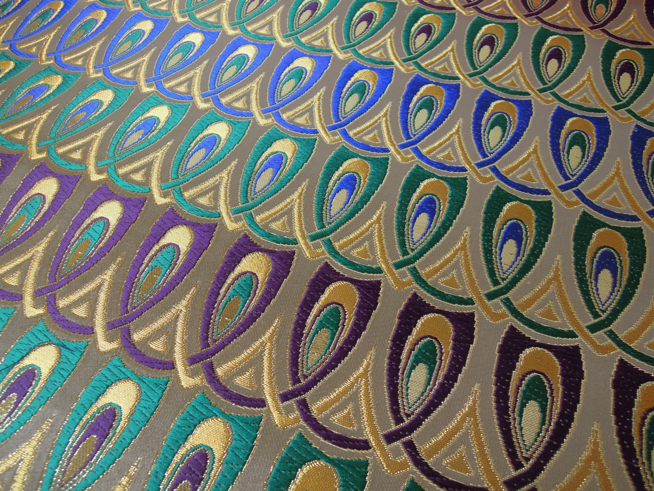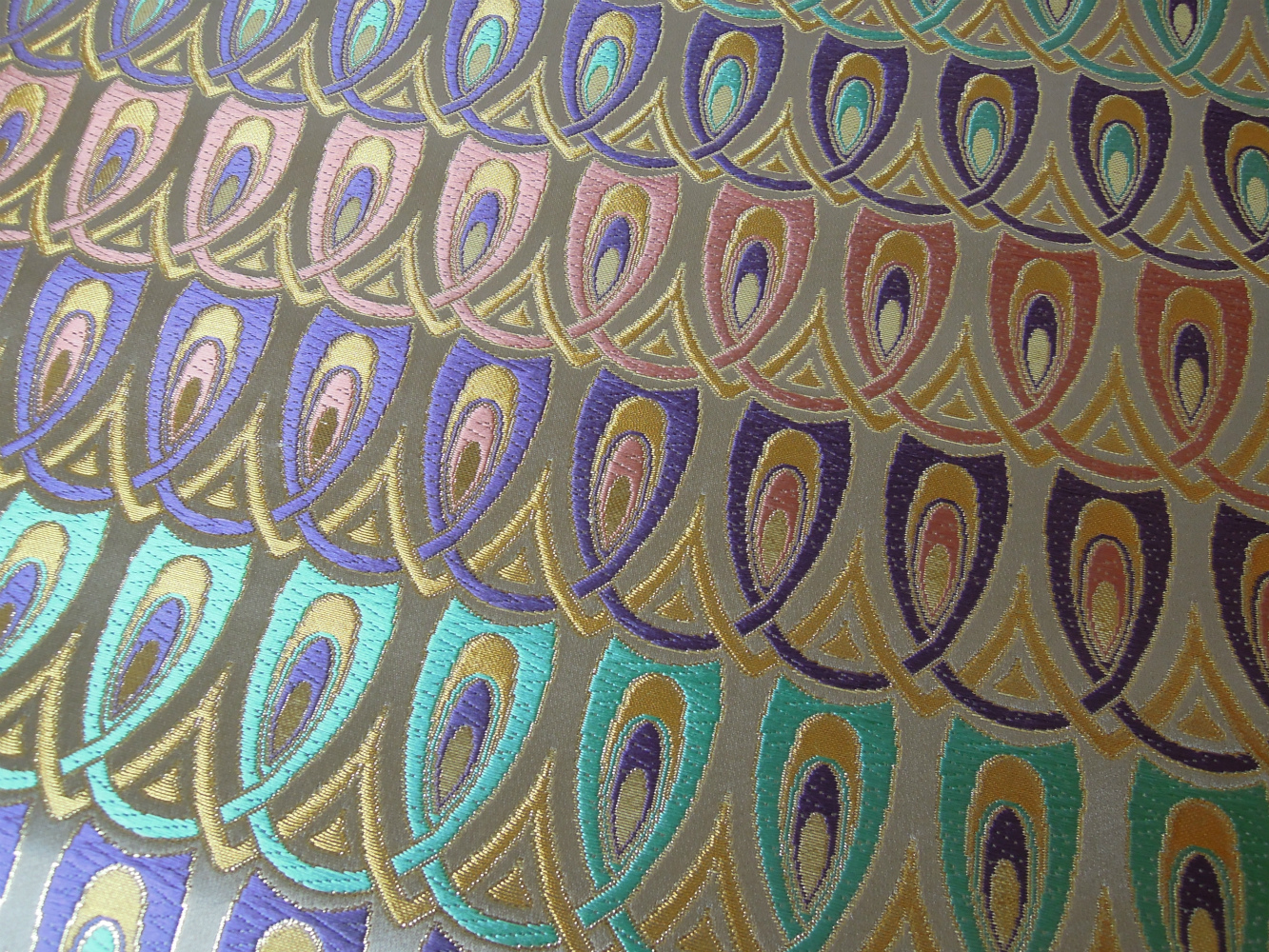 西陣織のテキスタイルデザイナーである筆者は孔雀の羽がとても好きです。孔雀の羽のような 西陣織 正絹 金襴 を織りたい。との思いで織りました。