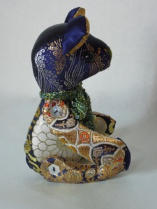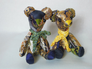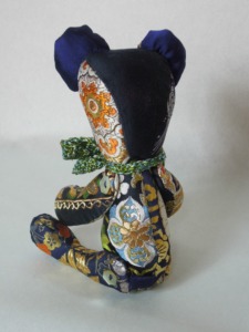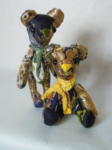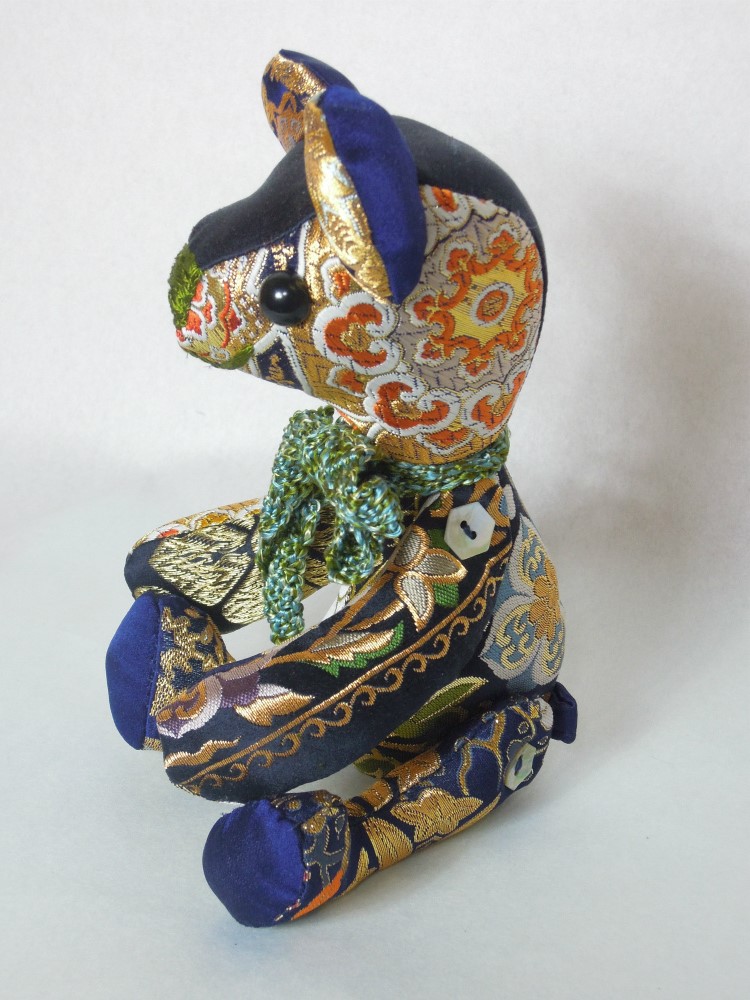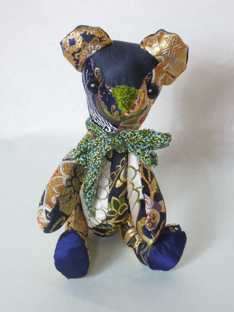 先日載せた 金襴でテディベア blue、の兄弟、緑のクマちゃん。
