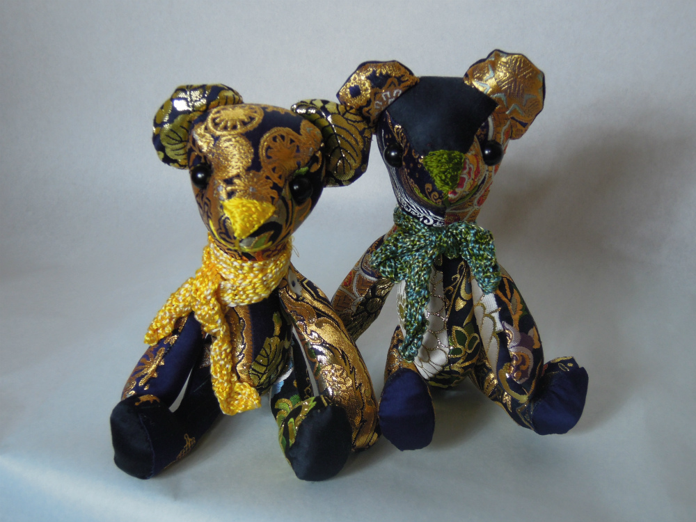 今日の西陣織 金襴でテディベア yellowで3兄弟のご紹介が完了。